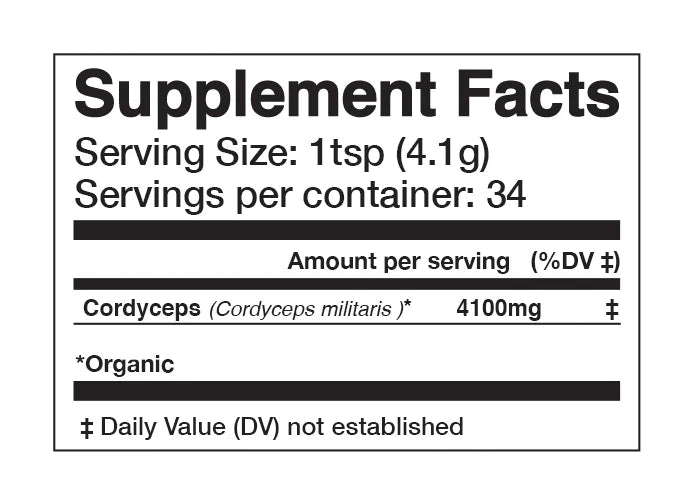 INGREDIENTS Cordyceps (Cordyceps militaris) Mushroom* OUR MUSHROOMS ARE ACTIVATED. All of our mushroom powders have gone through a steam process to make the cell walls break down and enhance the bioavailability of the constituents. This term is referred to as “activation” or “steam extraction.”