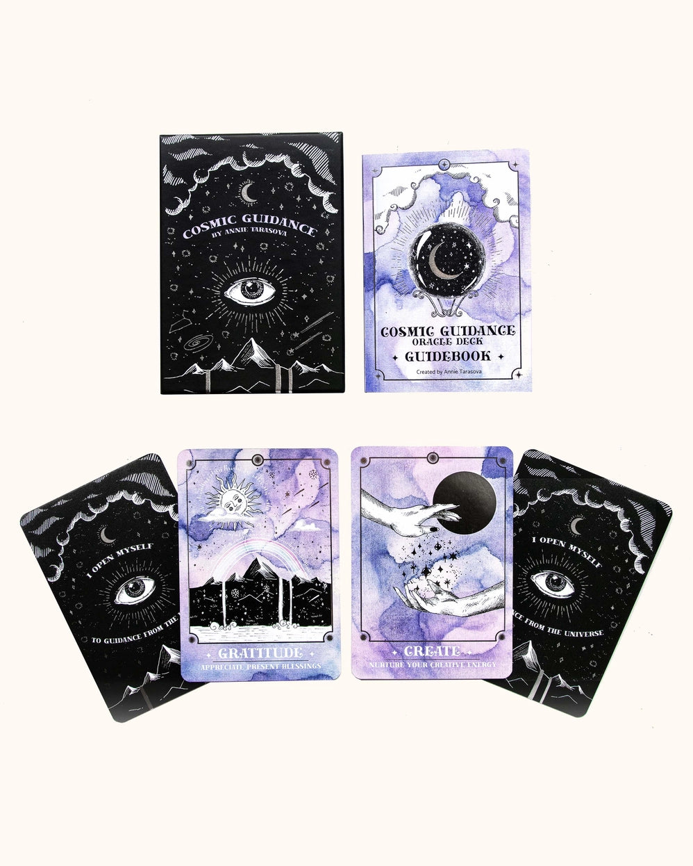 Cosmic Guidance was created with endless love, with an intention to help you connect with your intuition and the Universe, and gently offer you guidance on anything that might be on your mind. The violet colour present in the (original) decks is the colour of our Crown Chakras - energy centres that allow us to connect with the divine energy that created us: pure love, peace and joy.