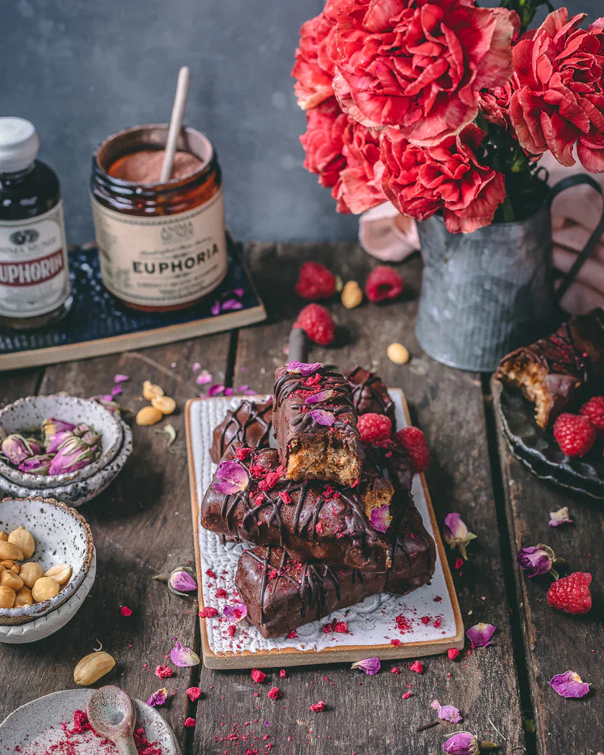 INGREDIENTS Pomegranate (Punica granatum) Fruit, Cacao (Theobroma cacao) Bean*, Rose (Rosa centifolia) Petal, Lucuma (Pouteria lucuma) Fruit*, Damiana (Turnera diffusa) Leaf, Catuaba (Erythroxylum vaccinifolium) Bark, Schisandra (Schisandra chinensis) Berry, Guarana (Paullinia cupana) Seed, Muira Puama (Ptychopetalum olacoides) Bark, Vanilla (Vanilla planifolia) Bean*, Monk (Siraitia grosvenorii) Fruit, Goji (Lycium barbarum) Berry* *Organic