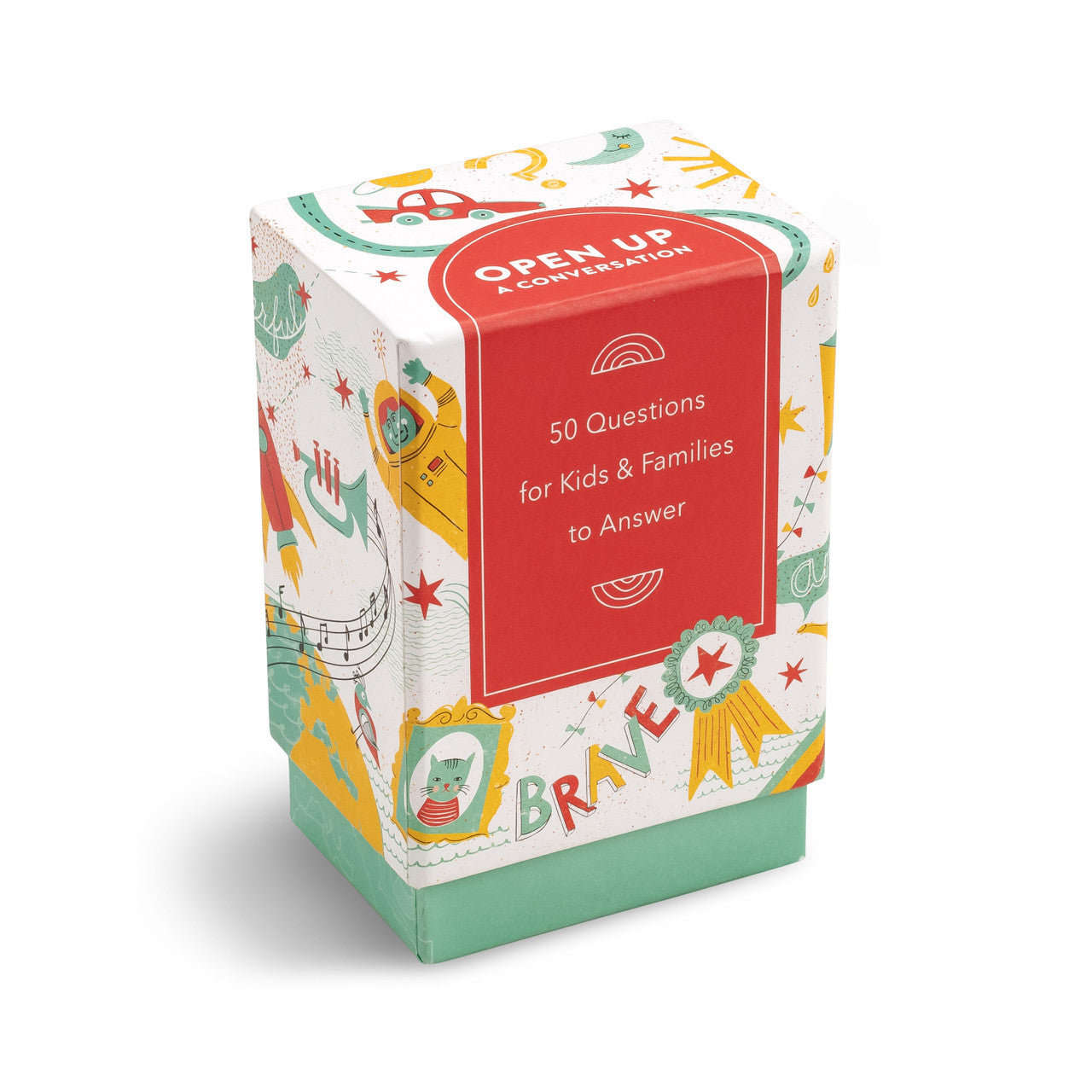 Inside this box are 50 conversation starters — questions you can ask at the dinner table, before bedtime, or in the car.