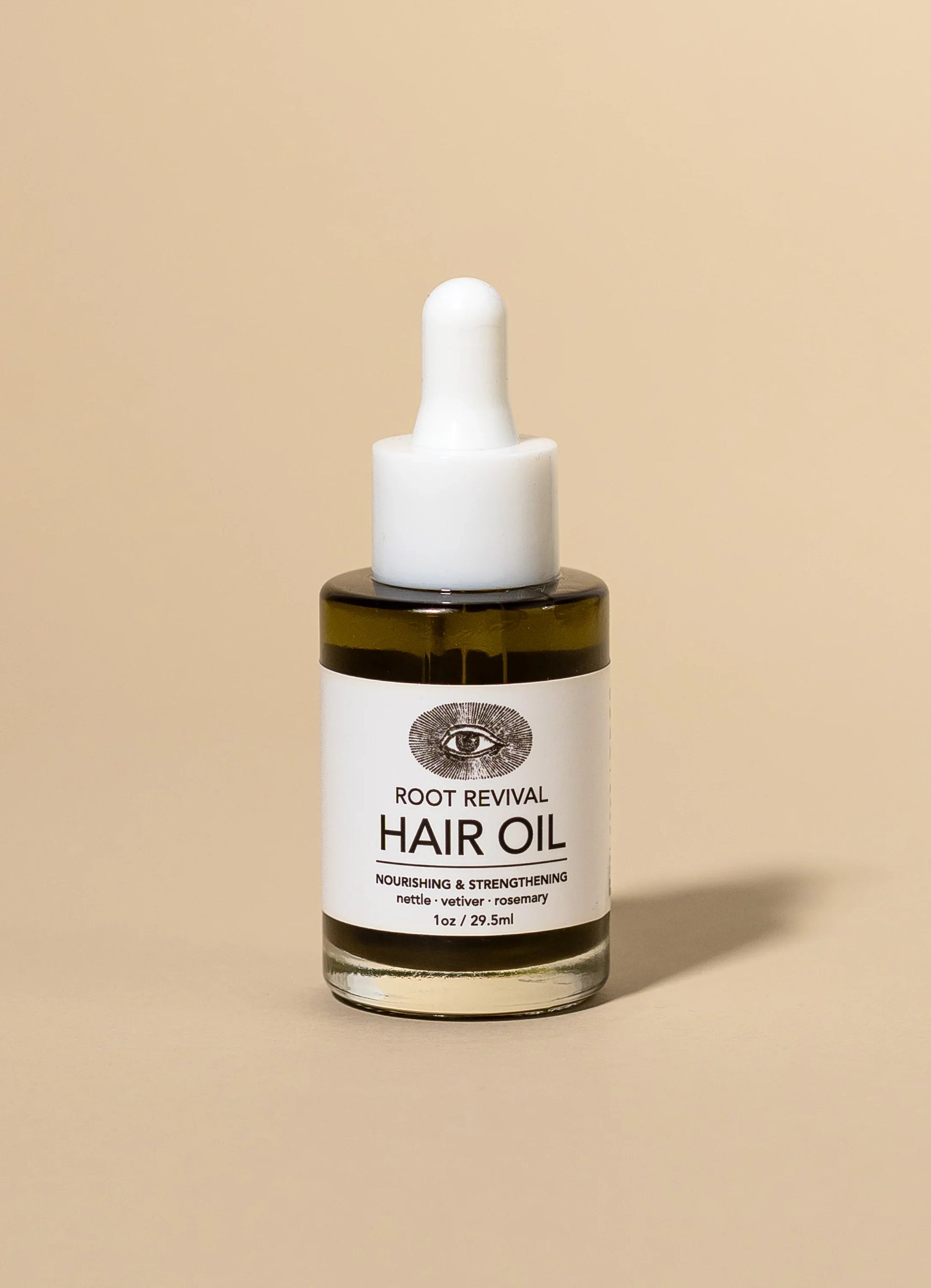 Root Revival is a nourishing oil made with herbs traditionally used to support scalp and hair vitality.* This rich blend delivers plant-based care from root to tip, helping hair feel stronger, softer, and more resilient.*