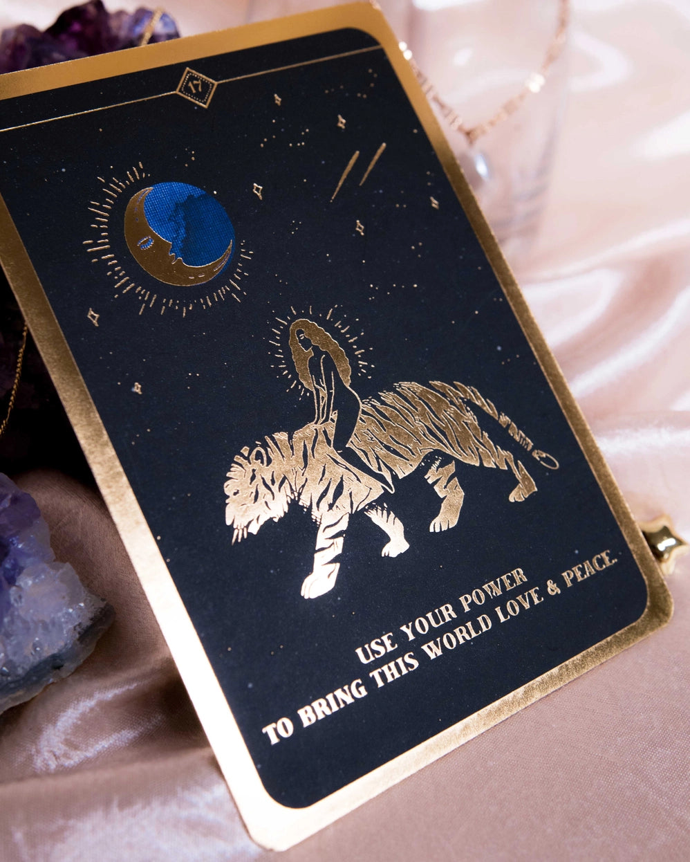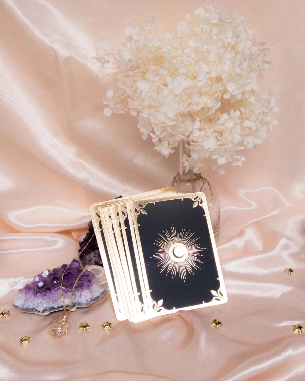 This is a set of 33 gold foiled cards + guidebook + box. Designed and written by Annie Tarasova.