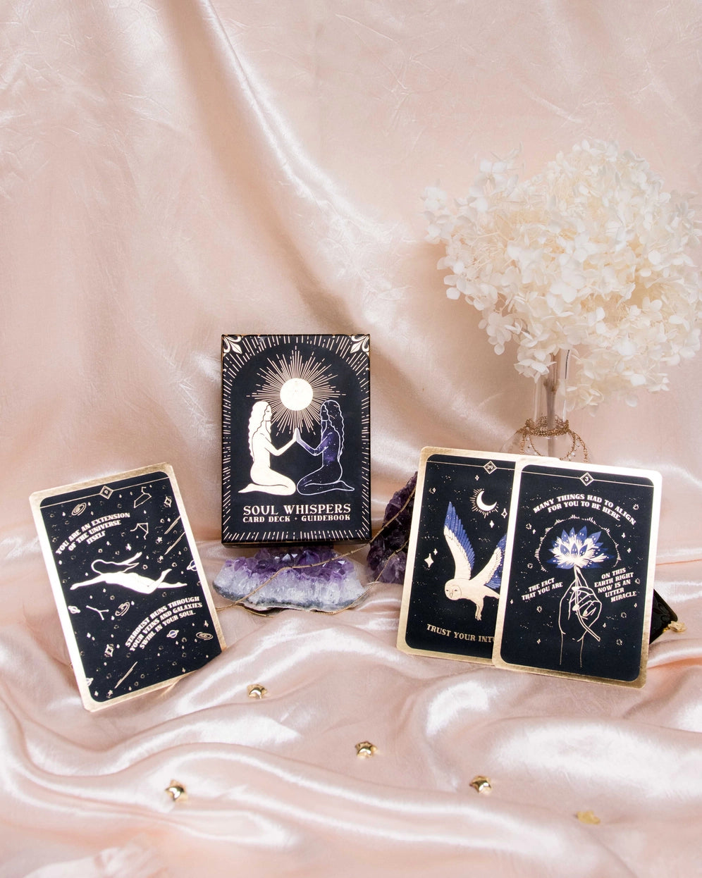 Deep meditation, a sense of infinite unity and love, heightened intuition and endless inspiration. Soul Whispers card deck came from that place, a place bigger than myself. The messages on the cards and in this booklet came from my personal realisations, experiences and beliefs. I feel that if my Higher Self - my soul - could speak, this is exactly what it would tell me. It would tell me that I am safe, that I am loved, that I can make anything happen.